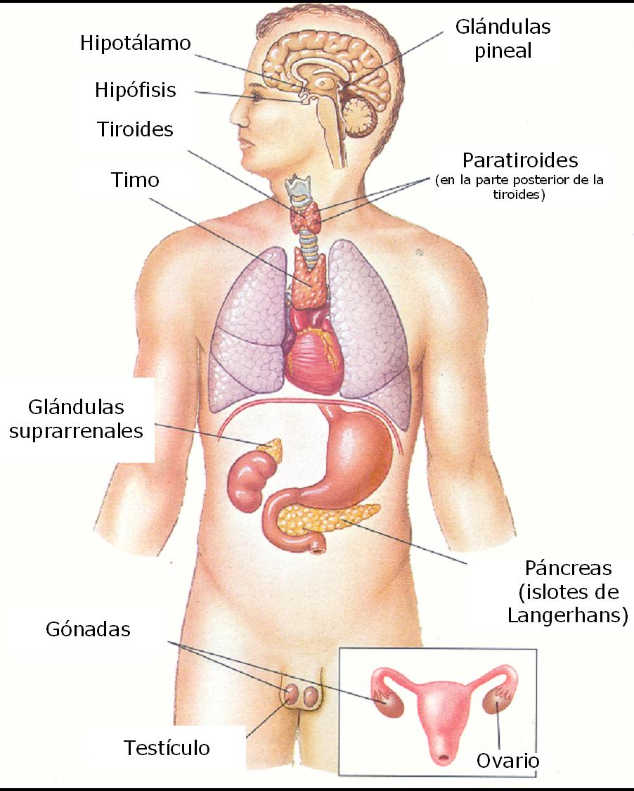 insulina, etc. que vierten en la sangre. Estas forman un sistema hormonal que
